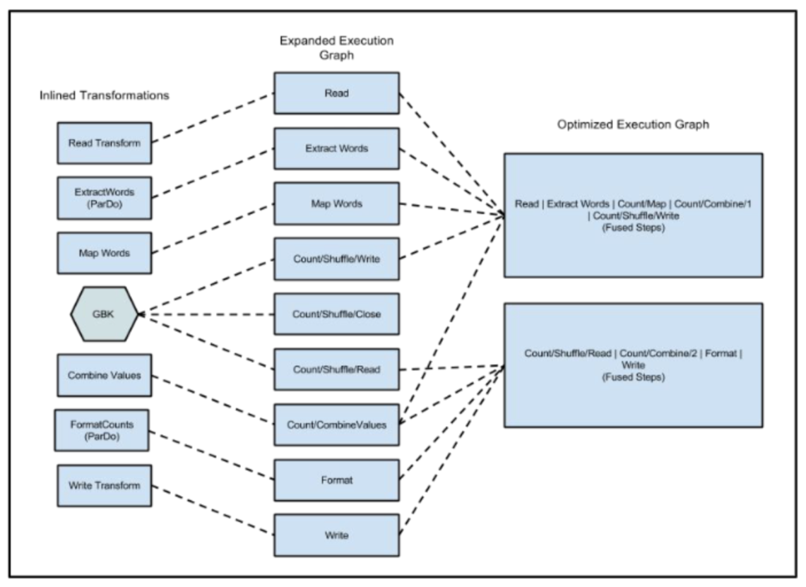 Dataflow는 Aggregation을 진행하는 Transform이 있으면 해당 Transform 앞뒤로의 Fusion이 일어나지 않아요.