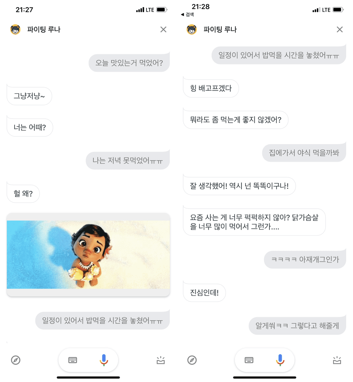 핑퐁팀에서 구글 어시스턴트에 출시한 '파이팅 루나'라는 일상대화 챗봇을 아시나요? 루나는 작년 초 구글 어시스턴트에 탑재된 귀여운 여고생 챗봇이에요. 유치할 것 같기도 한 이런 챗봇을 사람들이 정말 좋아하는지 긴가민가 하시죠?