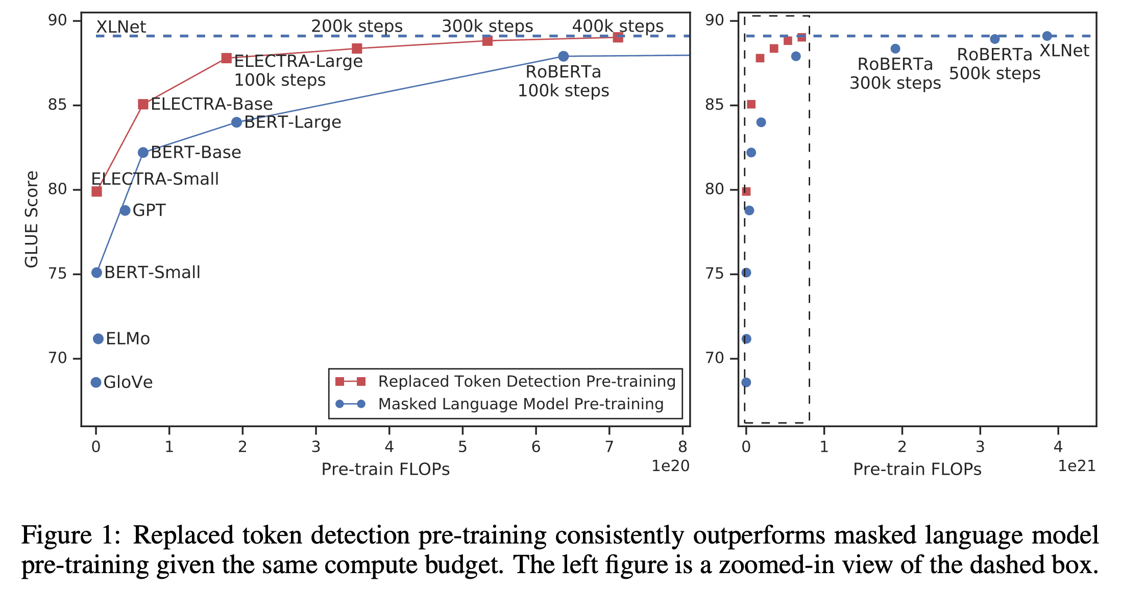 - ELECTRA: Pre-training Text Encoders as Discriminators Rather Than Generators: https://openreview.net/pdf?id=r1xMH1BtvB